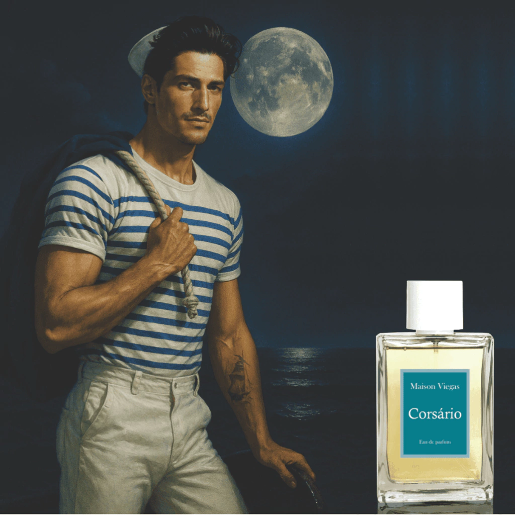 Corsário é a interpretação da Maison Viegas para um dos perfumes mais marcantes da perfumaria masculina moderna. Uma fragrância que combina frescor aromático, especiarias quentes e uma base cremosa inesquecível, criando uma assinatura sedutora, envolvente e atemporal.